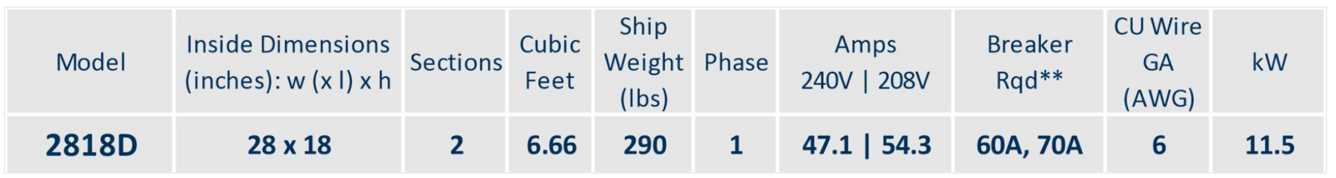 | Model | Watts | Volts | Phase | Amps | Wire Connection | Max Temp | Certification |