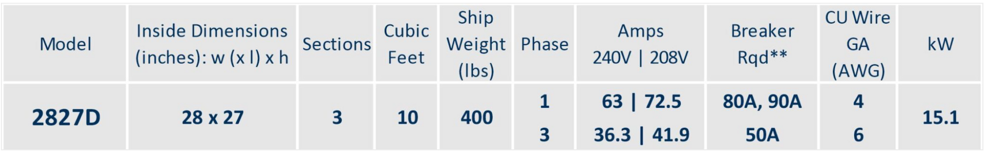| Model | Watts | Volts | Phase | Amps | Wire Connection | Max Temp | Certification |