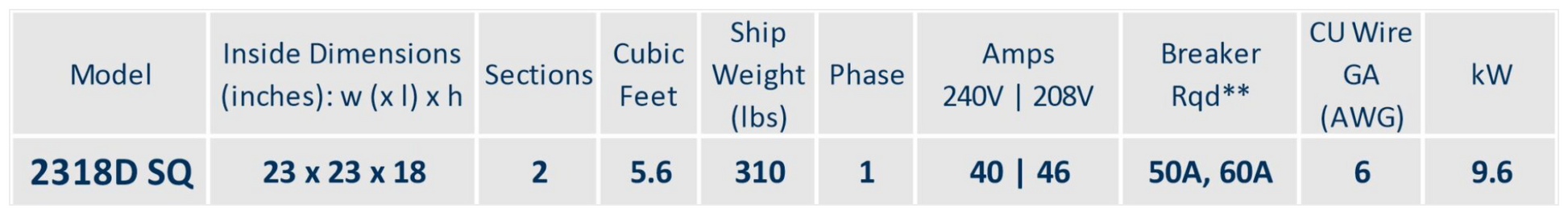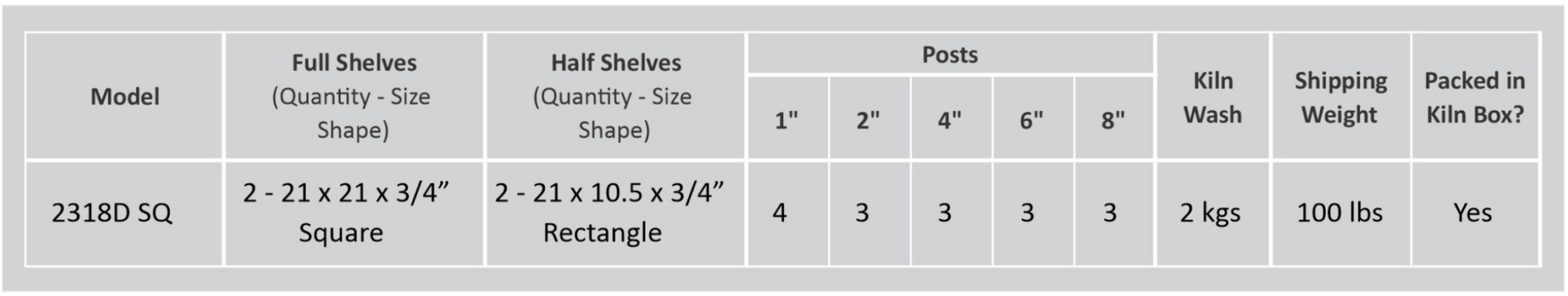 | Kiln model | 2318D SQ |